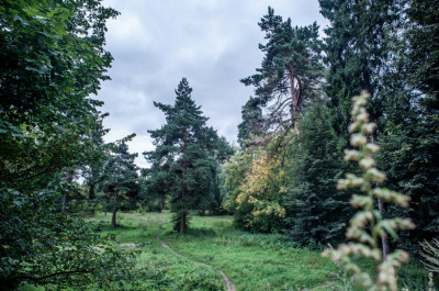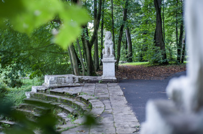 - Сохранившееся, хоть и потерявшее первоначальный облик здание главного дома. В живописном парке можно найти статуи загадочных сфинксов.