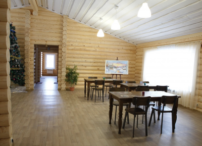 Для гостей работает банкетный зал с панорамными окнами и русской печью для торжественных мероприятий. Здесь подают русскую пиццу и пироги из печи.