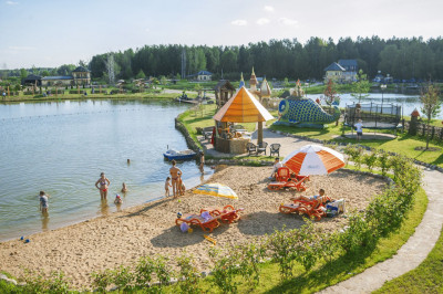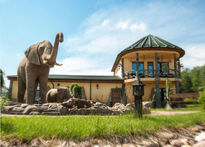 Пообедать можно в ресторане «Островок», остановиться на ночь — в домике в африканском стиле или в коттедже на берегу озера.