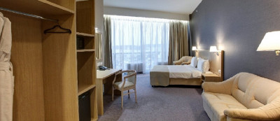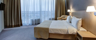 Разместиться можно в номерах категорий «Стандарт», «Комфорт» и «Студия». Все номера оснащены рабочей зоной с бесплатным Wi-Fi, кондиционером, кабельным ТВ, мини-холодильником, ванной комнатой, феном и тапочками (по запросу). Предусмотрены специальные тарифы для групповых заездов от 20 человек.