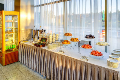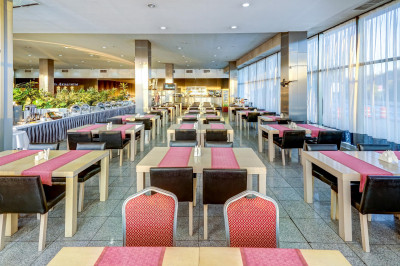 На первом этаже отеля круглосуточно работают ресторан и лобби-бар. Также еду и напитки можно заказать в номер.