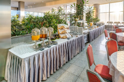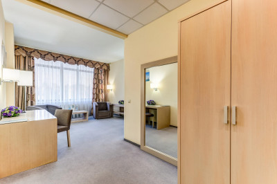 В гостинице 225 комфортабельных номеров, включая 12 двухкомнатных люксов. В каждом есть кондиционер, ТВ, сейф и доступ к Wi-Fi.