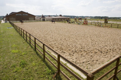 В клубе имеется две конюшни, в которых можно разместить до 108 лошадей. Просторный открытый манеж позволяет тренироваться восьми всадникам одновременно. Если понадобится поработать в одиночестве, достаточно перейти по крытому переходу в один из двух вспомогательных круговых манежей. Также в клубе есть три плаца –тренировочный и два для соревнований по выездке.