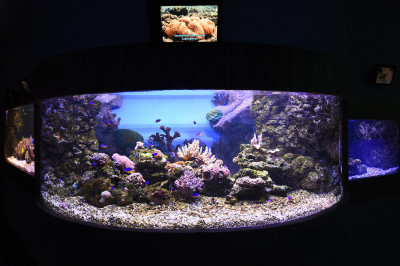 Экспозиция «Моря и океаны» — это глубоководные хищники и обитатели коралловых рифов. Здесь встречаются кровожадные акулы, ядовитая рыба фугу, скаты, мурены, барракуды, а также черепахи и морские звезды.