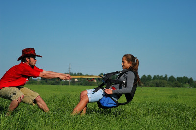 Во время развлекательных полетов пассажир поднимается на высоту около 300 метров. Профессиональный пилот, который управляет парапланом, будет находиться сзади. Старт производится с помощью лебедки.