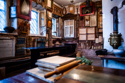 На первом этаже музея расположены «Чайная», «Печная» и экспозиция «Назад в СССР», которая рассказывает о кухне в коммуналке времен Советского Союза.