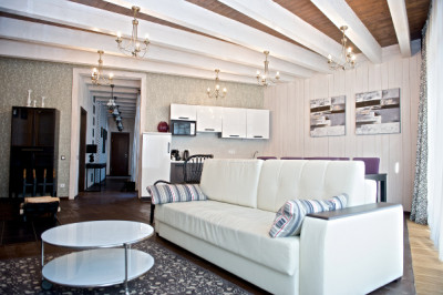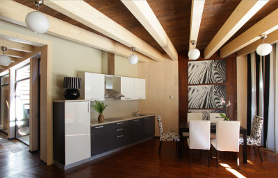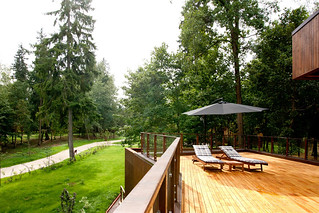 В коттеджном поселке премиум-класса для проживания сдаются домики разных типов в стиле хай-тек: от мини-коттеджа для небольшой компании до гостевого пентхауса с пятью спальнями. В распоряжении гостей собственный пляж, детские площадки и беседки для отдыха. В зимнее время открыты каток, тюбинговая трасса и лыжня.