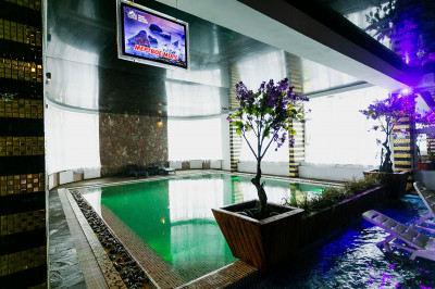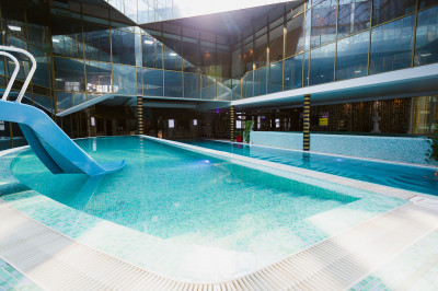 В аквакомплексе Grand Wellness есть пять разнообразный бассейнов – с морской водой, с водой «Мертвого моря», джакузи, детский и спортивный. Еще один находится под открытым небом. Рядом с ним можно удобно расположиться на шезлонге, летней веранде или в беседке.