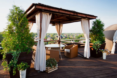 На открытой территории располагается летнее кафе. Здесь можно арендовать мангал, купить маринованное мясо, пожарить шашлыки самостоятельно или воспользоваться услугами повара. Место доступно для проведения корпоративов и других мероприятий.