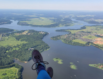 В Подмосковье парапланы обычно летают на высоте 300 – 500 метров. Но если образуются восходящие потоки воздуха, то есть шанс подняться до 1,5 километров. В среднем полет длится 10 минут. Если инструктор выполняет фигуры пилотажа, время сокращается.