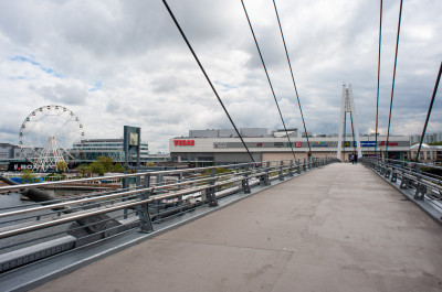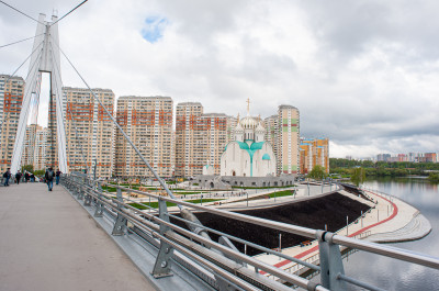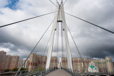 Самый длинный пешеходный мост в Подмосковье соединяет территорию красногорского «Вегаса» с микрорайоном Павшинская пойма. Вантовый мост красиво вписывается в городской пейзаж. С него же открывается живописный вид на Москву-реку и окрестности.