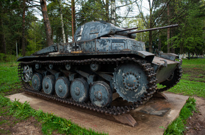 На танковой площадке представлен один из немногих сохранившихся немецких тяжелых танков «Тигр».