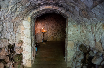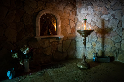 Преподобный Савва для молитвенного общения с богом часто удалялся в глубокий овраг, находящийся в версте от монастыря. Там он своими руками вырыл пещеру и колодец, который забил ключом.