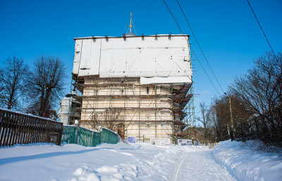 – приподняли храм, поставив его на высокий цоколь (подклет);