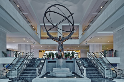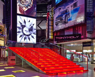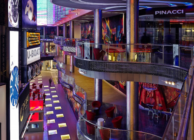 Семиуровневое пространство вмещает точные копии нью-йоркских Times Square с экранами и Rockefeller Center со статуей Прометея на воде и катком, а также улицы Манхэттена – Madison Аvenue и 47th Street.