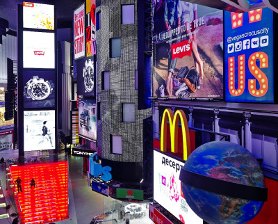 Гигантский медиафасад транслирует не только рекламные ролики, но и мероприятия, проходящие в центре. В Vegas проходят бесплатные концерты с популярными артистами. Кроме того, здесь располагается концертный зал Vegas City Hall.