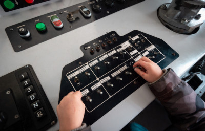 - Загляните в кабину машиниста. Посмотрите, как молодые железнодорожники руководят сцепкой вагонов. Послушайте технику безопасности от бригадира поезда.