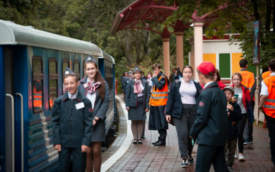 - Управляют поездом на ДЖД школьники 11-17 лет.