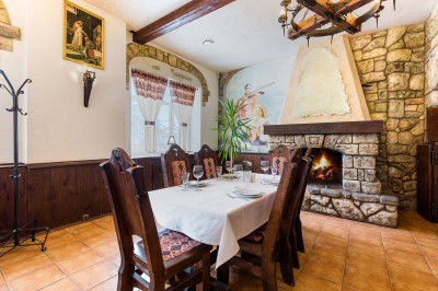 В ресторане при отеле подают блюда кавказской и европейской кухни. Также есть беседка на 40 человек.