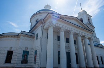 В таком виде церковь простояла до 30-х годов XIX века, пока Серпуховское духовное правление не приняло решение о перестройке. Собор Николы Белого предстал великолепным образцом московского ампира. Архитектурному облику добавили строгих линий и помпезности, появилась многоярусная колокольня с трапезной, возвысилась купольная ротонда. Вместе с главным престолом построили два дополнительных – в честь святителя Алексия, Митрополита Московского и преподобного Кирилла Белозерского.