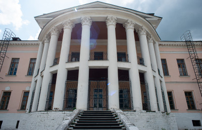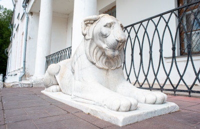 - На территории усадьбы находятся дворец, липовый парк, конный двор, различные флигели и хозяйственные постройки.